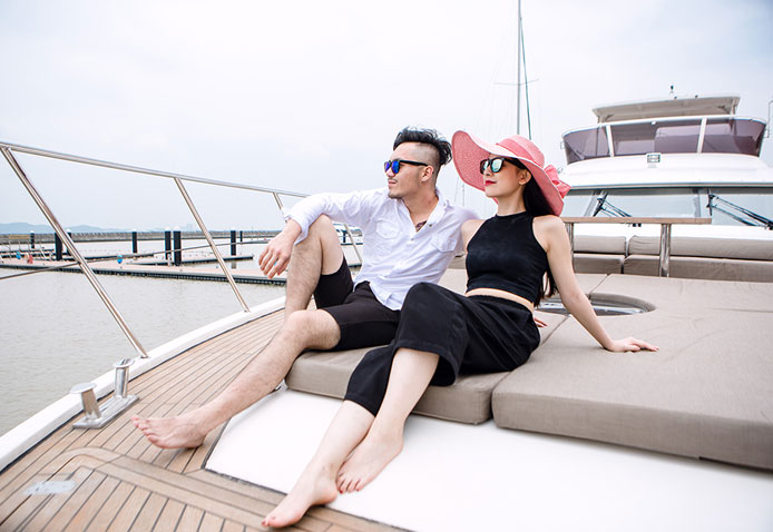 根據您的商務或休閑需求,南沙游艇會將為您量身定制一系列獨特而美妙的海上旅程。您可在82英尺的豪華游艇上慢享浪漫的艇上晚宴,看落日余暉鋪灑海面,任清爽的海風吹散煩囂;抑或約三、五好友于游艇上揮桿海釣,縱情海天之間,愜享垂釣的無限樂趣;想要定格不一樣的浪漫記憶,于豪華游艇上拍攝海上婚紗照,是最美不過的選擇。和最愛的TA在大海中馳騁,美麗的愛情浪花肆意綻放……無論是浪漫的海上婚紗照,還是私密的艇上晚宴、悠閑的海上假期,82英尺的“鐵虎號”都將給您一次難忘而獨特的游艇體驗。